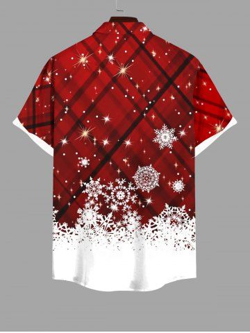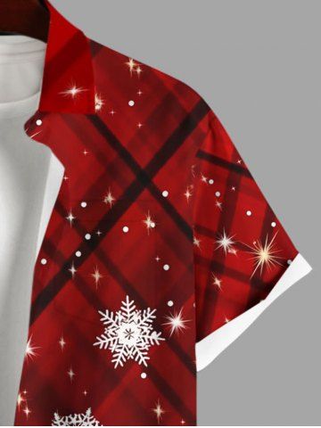 Plus Size Christmas Snowflake Star Colorblock Plaid Glitter 3D Print Buttons Pocket Shirt For Men - Red - 3xl