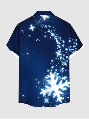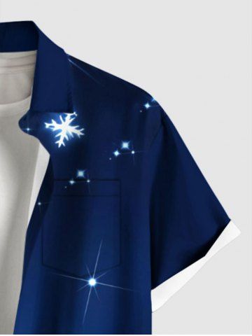 Plus Size Christmas Snowflake Star Glitter 3D Print Buttons Pocket Shirt For Men - Sky Blue - 2xl