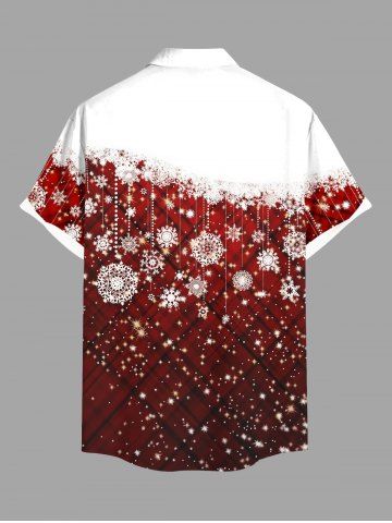 Plus Size Christmas Snowflake Tassel Colorblock Glitter 3D Print Buttons Pocket Shirt For Men - Red - 6xl