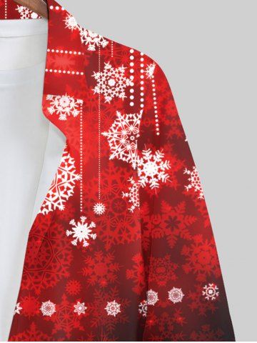 Plus Size Christmas Snowflake Tassel Ombre Print Buttons Pocket Long Sleeve Shirt For Men - Red - 8xl