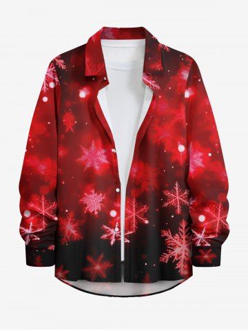 Plus Size Christmas Snowflake Tie Dye Ombre Glitter Galaxy Print Button Long Sleeves Shirt For Men - Red - 6xl