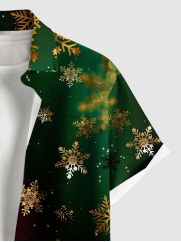 Plus Size Christmas Snowflake Tie Dye Ombre Print Button Pocket Shirt For Men - Black - 4xl