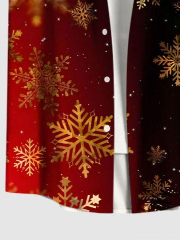 Men's Clothing > Plus Size Christmas Snowflake Tie Dye Ombre Print Button Pocket Shirt For Men