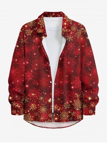 Plus Size Christmas Snowflake Tie Dye Print Buttons Pocket Shirt For Men - Red - 6xl