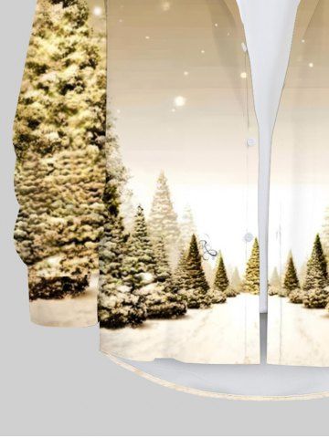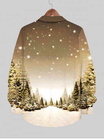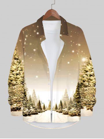 Men's Clothing > Plus Size Christmas Snowflake Tree Forest Print Ombre Button Long Sleeves Shirt For Men