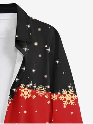 Plus Size Christmas Snowflake Two Tone Colorblock Star Glitter 3D Print Buttons Pocket Shirt For Men - Red - M