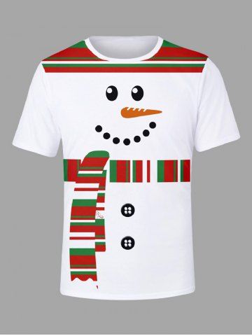 Plus Size Christmas Snowman Colorful Striped Print T-shirt For Men - White - 5xl