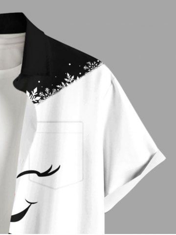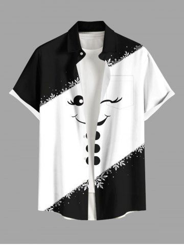 Plus Size Christmas Snowman Face Snowflake Colorblock Print Buttons Pocket Shirt For Men - Black - M