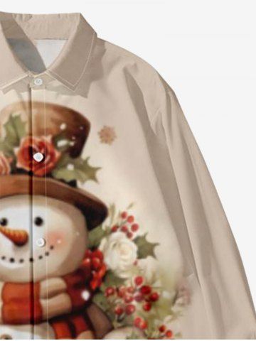 Plus Size Christmas Snowman Floral Holly Leaf Print Button Long Sleeves Shirt For Men - Light Coffee - 7xl
