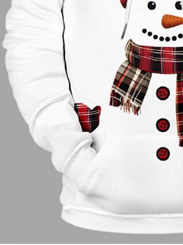 Plus Size Christmas Snowman Plaid Hat Scarf Gloves Print Pocket Drawstring Hoodie For Men - White - M