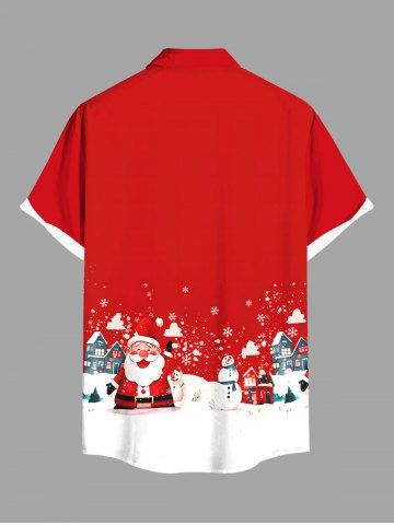 Plus Size Christmas Snowman Santa Claus Snowflake Print Buttons Pocket Shirt For Men - Red - S