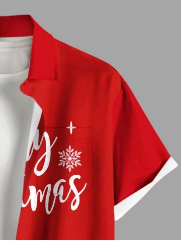 Plus Size Christmas Snowman Santa Claus Snowflake Print Buttons Pocket Shirt For Men - Red - 5xl