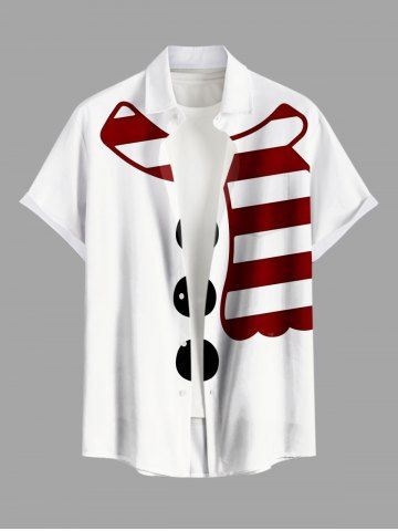 Plus Size Christmas Snowman Scarf Print Button Pocket Shirt For Men - White - 2xl