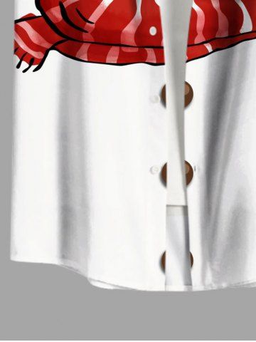 Plus Size Christmas Snowman Scarf Print Buttons Pocket Shirt For Men - White - 5xl