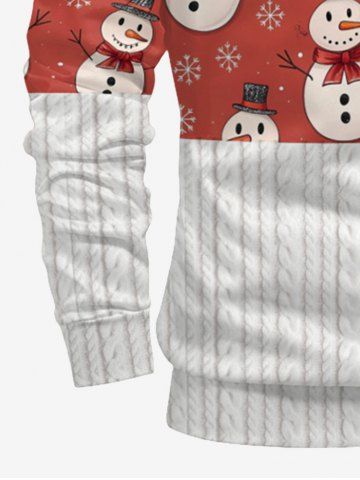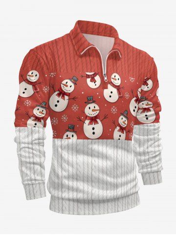 Plus Size Christmas Snowman Snowflake Cable Knit 3D Print Zipper Long Sleeve Polo Shirt For Men - Red - S