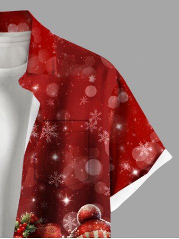 Plus Size Christmas Snowman Snowflake Colorblock Print Buttons Pocket Shirt For Men - Red - 4xl
