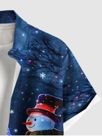 Plus Size Christmas Snowman Snowflake Musical Instrument Tree Print Buttons Pocket Shirt For Men - Navy Blue - 6xl