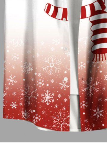 Plus Size Christmas Snowman Snowflake Ombre Colorblock Print Buttons Pocket Shirt For Men - White - 3xl