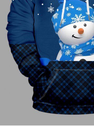 Plus Size Christmas Snowman Snowflake Plaid Colorblock Print Pocket Drawstring Hoodie For Men - Navy Blue - Xl
