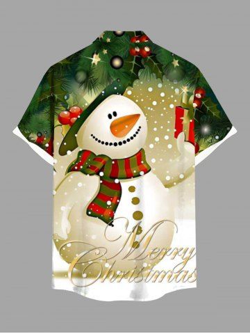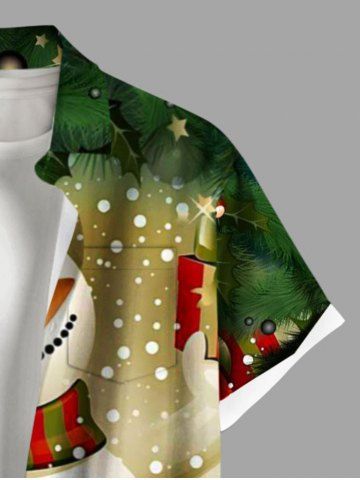 Plus Size Christmas Snowman Star Snowflake Print Buttons Pocket Shirt For Men - Green - Xl