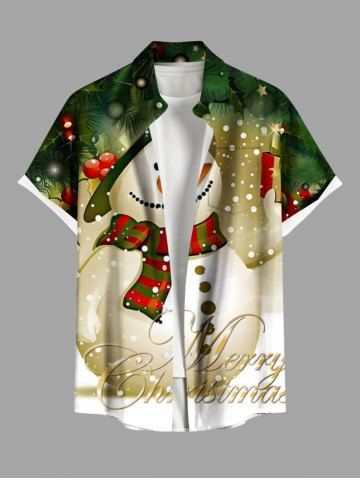 Plus Size Christmas Snowman Star Snowflake Print Buttons Pocket Shirt For Men - Green - 6xl