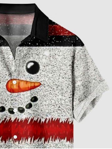 Plus Size Christmas Snowman Striped Print Button Pocket Shirt For Men - Light Gray - 4xl
