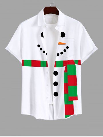 Plus Size Christmas Snowman Striped Scarf Print Buttons Pocket Shirt For Men - White - Xl