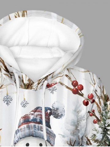 Plus Size Christmas Snownan Snowflake Bird Holly Fruit Print Drawstring Pockets Hoodie For Men - White - 8xl