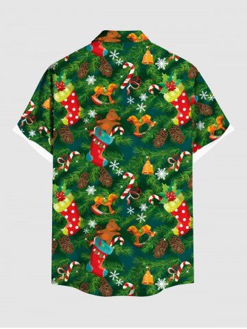 Plus Size Christmas Stocking Bell Bear Candy Snowflake Print Buttons Pocket Shirt For Men - Green - 3xl