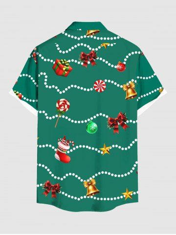 Plus Size Christmas Stocking Bell Candy Ball Bowknot Print Buttons Pocket Shirt For Men - Deep Green - 6xl