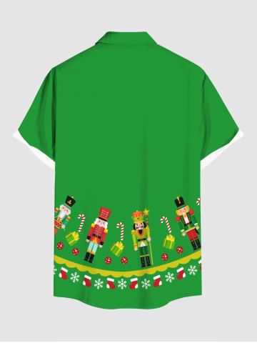 Plus Size Christmas Stocking Snowflake Candy Guard Print Buttons Pocket Shirt For Men - Green - 6xl