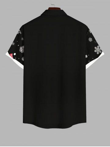 Plus Size Christmas Tree Ball Bird Snowflake Snowman Print Button Pocket Shirt For Men - Black - Xl