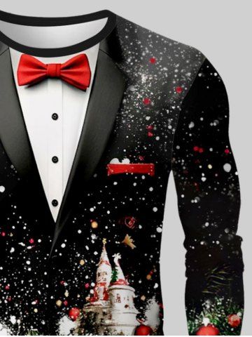 Plus Size Christmas Tree Ball Bowknot Snowflake Star Castle Print T-shirt For Men - Black - 6xl