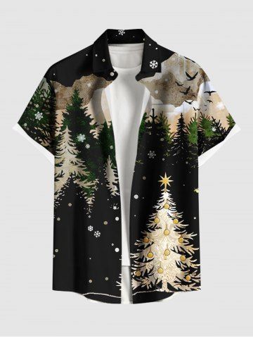Plus Size Christmas Tree Ball Forest Snowflake Cloud Print Button Pocket Shirt For Men - Black - Xl
