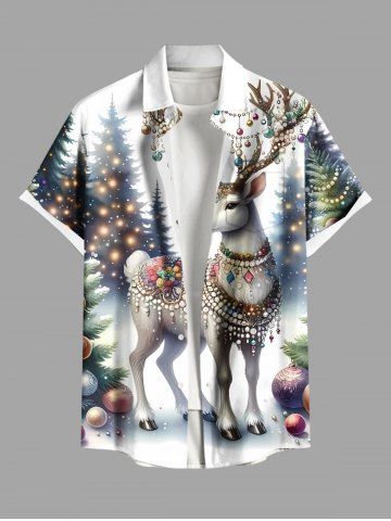 Plus Size Christmas Tree Ball Light Elk Print Buttons Pocket Shirt For Men - White - 3xl