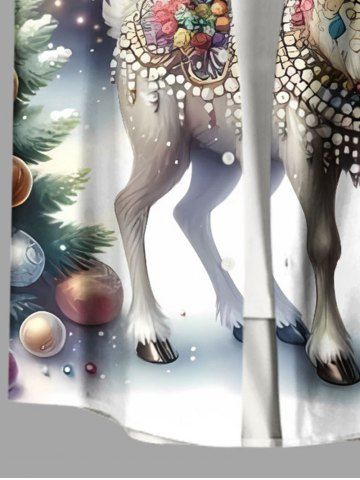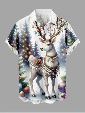 Plus Size Christmas Tree Ball Light Elk Print Buttons Pocket Shirt For Men - White - 6xl