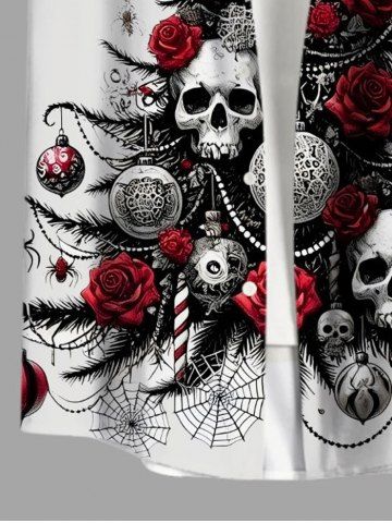 Men's Clothing > Plus Size Christmas Tree Ball Skulls Rose Flower Spider Web Print Buttons Pocket Shirt For Men