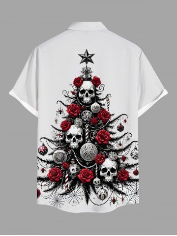 Plus Size Christmas Tree Ball Skulls Rose Flower Spider Web Print Buttons Pocket Shirt For Men - White - 4xl