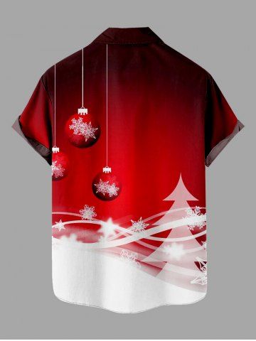 Plus Size Christmas Tree Ball Snowflake Light Beam Colorblock Print Buttons Pocket Shirt For Men - Red - 2xl
