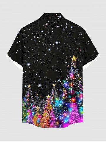 Plus Size Christmas Tree Ball Star Galaxy Glitter 3D Print Buttons Pocket Shirt For Men - Black - 5xl