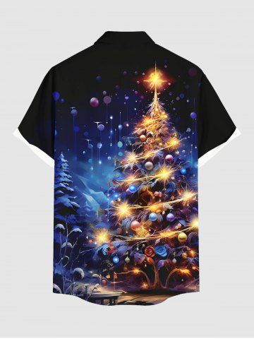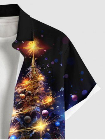 Men's Clothing > Plus Size Christmas Tree Ball Star Light Galaxy Glitter 3D Print Buttons Pocket Shirt For Men