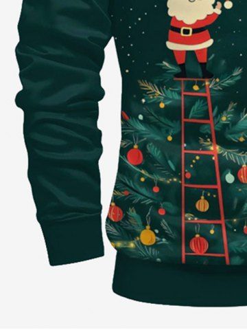 Plus Size Christmas Tree Ball Star Santa Claus Print Long Sleeve Polo Shirt For Men - Green - S