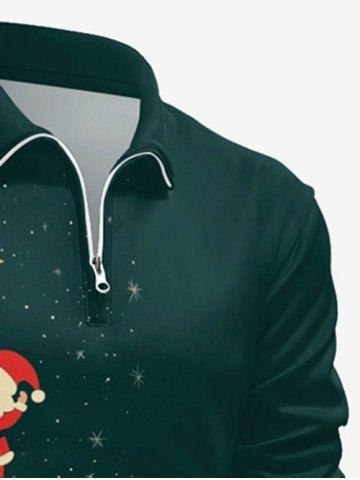 Plus Size Christmas Tree Ball Star Santa Claus Print Long Sleeve Polo Shirt For Men - Green - Xl