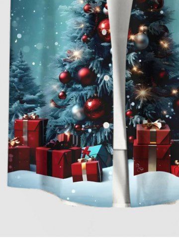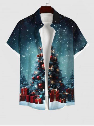 Men's Clothing > Plus Size Christmas Tree Ball Star Snowflake Gift Box Print Buttons Pocket Shirt For Men