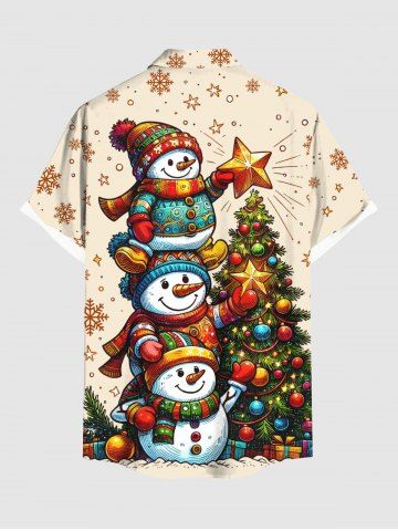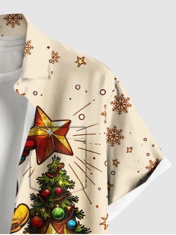 Plus Size Christmas Tree Ball Star Snowflake Snowman Print Buttons Pocket Shirt For Men - Apricot - Xl