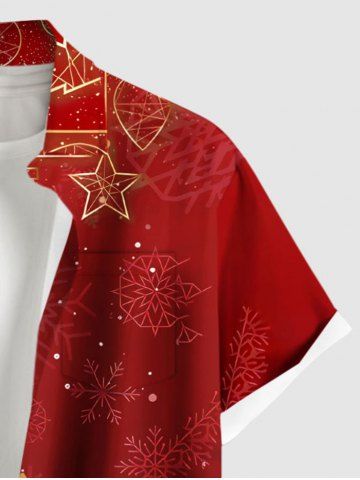 Plus Size Christmas Tree Bowknot Ball Bell Flowers Snowflake Print Buttons Pocket Shirt For Men - Red - 6xl