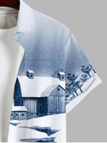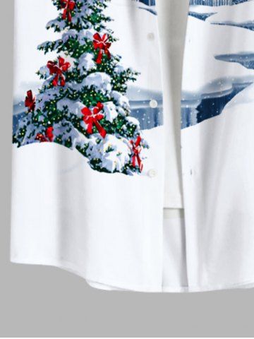 Plus Size Christmas Tree Bowknot Snowflake House Print Buttons Pocket Shirt For Men - White - S
