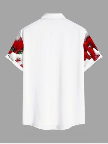 Plus Size Christmas Tree Candy Snowflake Holly Print Buttons Pocket Shirt For Men - White - M
