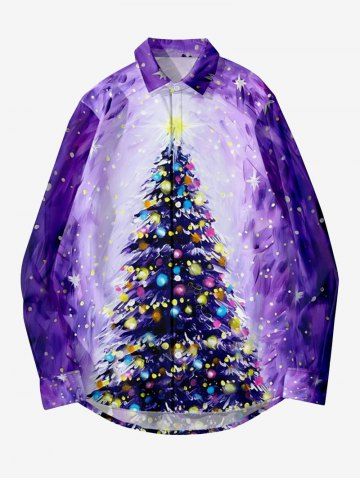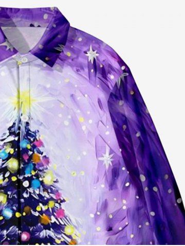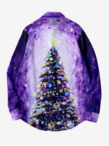 Plus Size Christmas Tree Coloured Lantern Galaxy Stars Print Button Long Sleeves Shirt For Men - Purple - 7xl