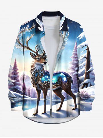 Plus Size Christmas Tree Elk Forest Print Button Long Sleeves Shirt For Men - Sky Blue - 6xl
